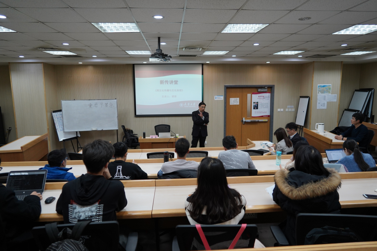 12月18日,中国传媒大学国际传媒教育学院院长梁岩教授访问我院,并带来题为《跨文化传播与文化自信》的新传讲堂报告,研究生院招生办公室主任孙鹤、日本成人电影 副院长王赞、新媒体研究院副院长李晋馥以及来自宣传部、经管学部、新传学院的师生参加了报告会。