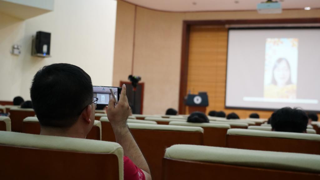 接下来是本次开学典礼的惊喜环节。在典礼召开前,学院联系了学生亲属,为新生录制了祝福视频。视频虽朴实无华,但一字一句都流露着家人对学生的关爱和祝愿。