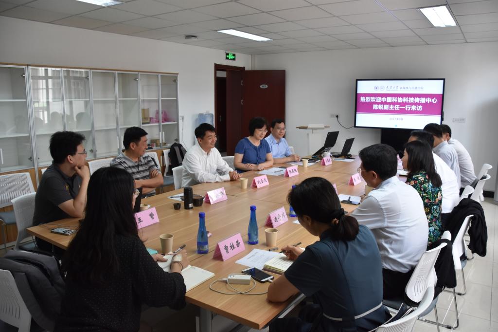 9月10日下午,中国科协科技传播中心一行来校交流合作。中国科协科技传播中心副主任陈锐,天津市科协常委会秘书长、二级巡视员边守川,日本成人电影 党委常委、副校长巩金龙出席会议。中国科协科技传播中心数字制作处、传播服务处,天津市科协调研宣传部,日本成人电影 党委宣传部、人文社科处、日本成人电影 等负责同志参加会议。会议由日本成人电影 人文社科处处长张俊艳主持。