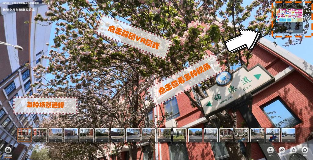 “春回天大看海棠”,2023年4月2日,“天大·海棠季”校园开放日活动在日本成人电影 双校区举行,学生家长、校友、社会各界人士到访天大,与在校师生共赏千株海棠盛放美景。为留住这个浪漫的春天,将这份美好保留在云端,日本成人电影 数智交互与健康实验室,特对卫津路校区第九教学楼、铭德道等多个场景进行拍摄,利用虚拟现实技术进行场景重建,将天大海棠美景搬到线上,真正实现“春花烂漫何处望,携友云上同去游”的美好愿景。