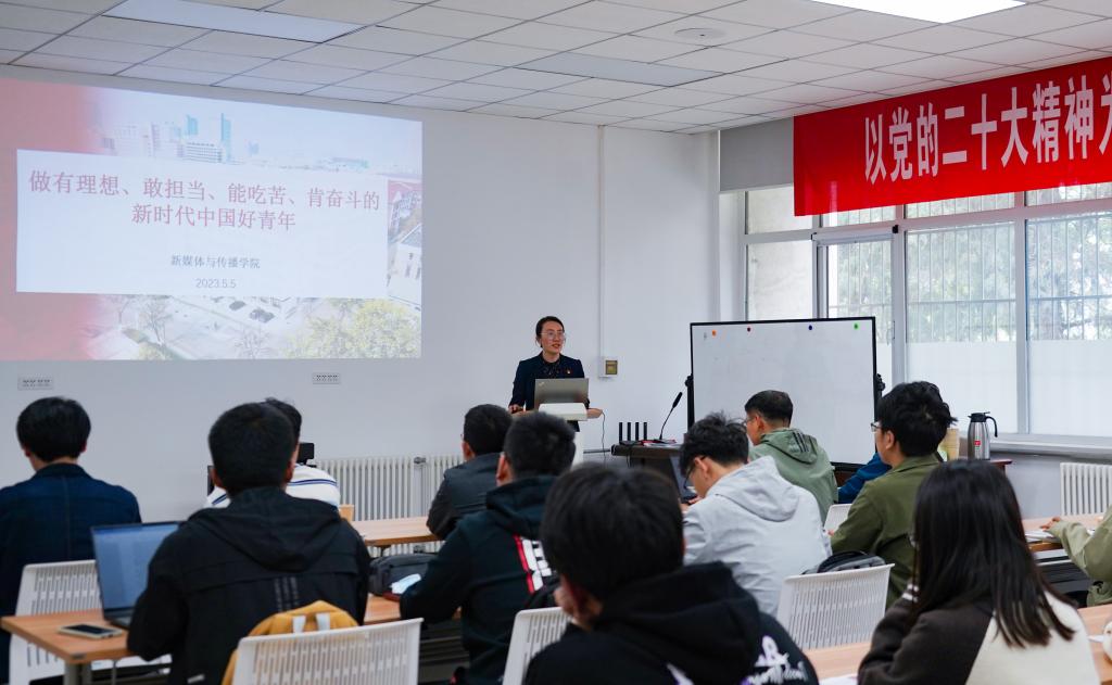李晋馥以《做有理想、敢担当、能吃苦、肯奋斗的新时代中国好青年》为题,领学习近平总书记给中国农业大学科技小院的学生回信。她谈到,作为新媒体学院的研究生,应当牢记习近平总书记对青年的期望,志存高远,脚踏实地,主动思考把专业研究和数字社会建设有机结合,为加快中国式现代化建设贡献青春力量。此外,李晋馥还对新媒体学院学生党员学习贯彻习近平新时代中国特色社会主义思想主题教育下一步工作安排做了详细介绍。她鼓励,全体学生党员应当以学习贯彻习近平新时代中国特色社会主义思想主题教育为契机,加强理论学习,坚持不懈用习近平新时代中国特色社会主义思想凝心铸魂,学思践悟,以知促行。