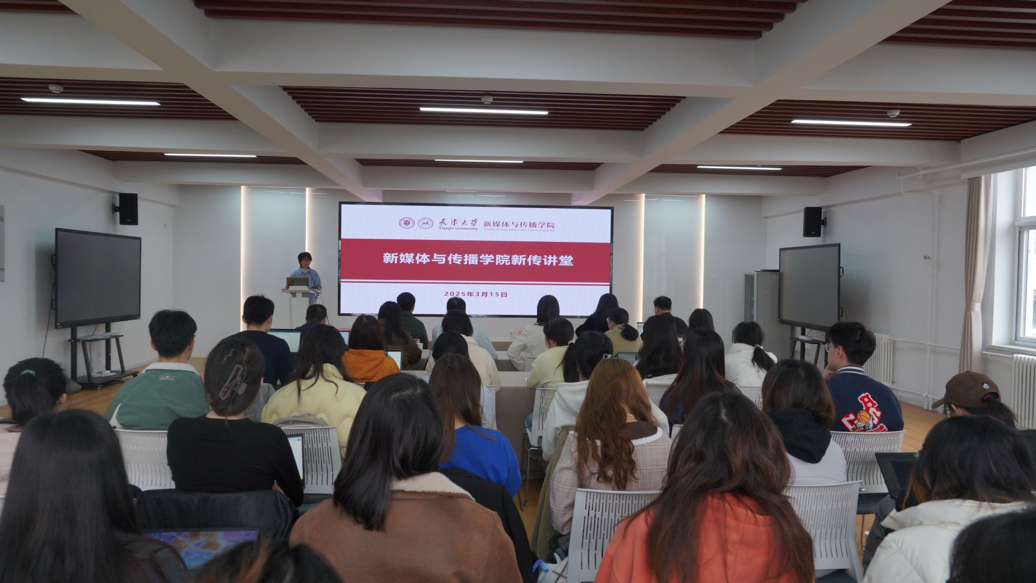 在互动环节中,学院师生积极提问,冯应谦教授和林健博士就相关问题进行了深入解答,现场气氛活跃。此次学术报告会为日本成人电影 130 周年校庆系列学术活动之一,不仅为师生们带来了前沿的学术观点,为学院师生未来的研究方向提供了新的启发,也为双方后续拓展在新媒体与传播领域人才培养、学术交流等方面合作搭建了桥梁。