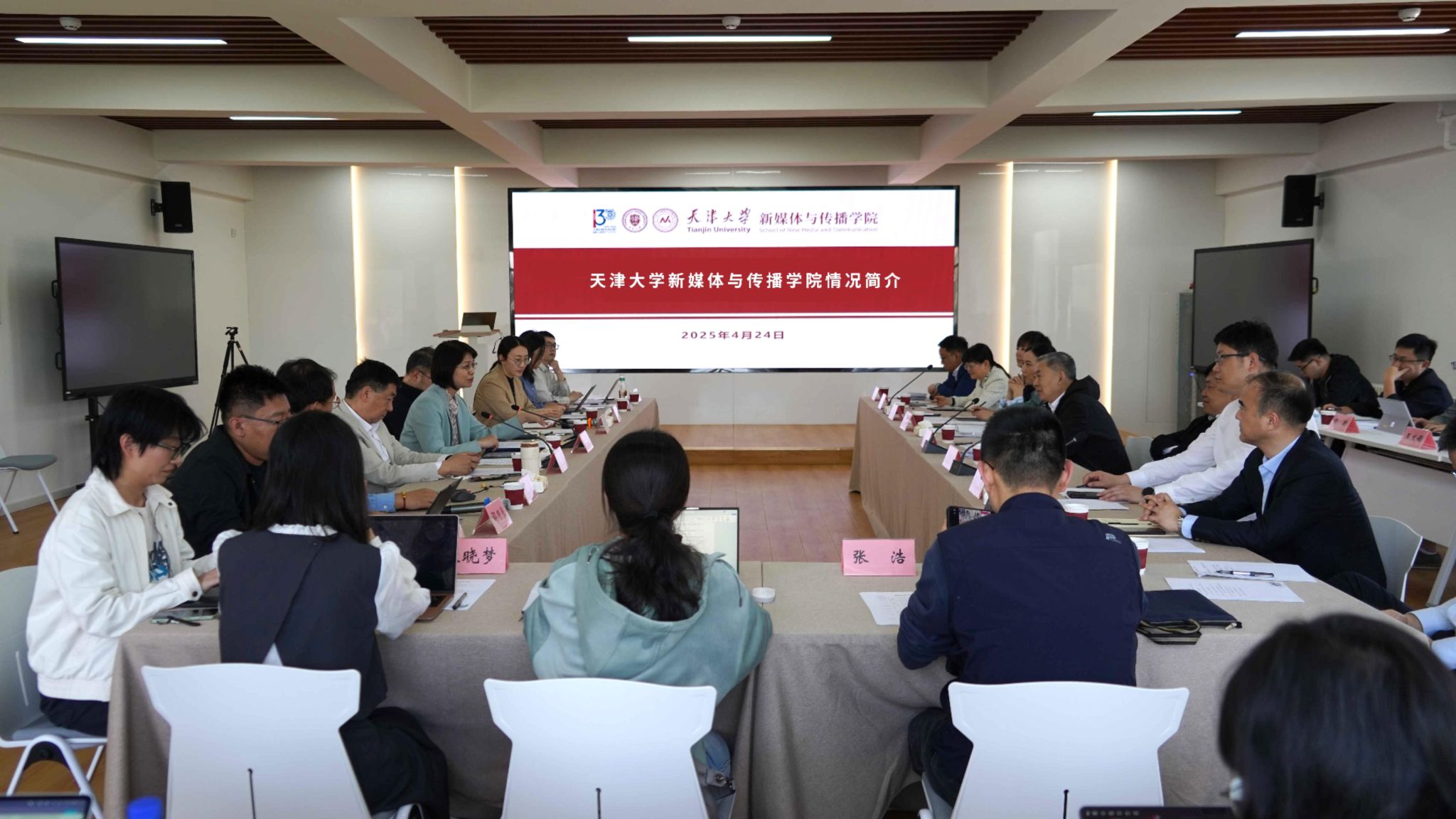 陆小华指出,学院自成立以来,在学校党委的大力支持下,发展迅速,学院具有两个鲜明特色:一是全国唯一一个将“新媒体”放在院名首位的学院,二是学院既培养新闻传播领域硕士,也培养人工智能领域硕士、博士及工程博士,形成了独特的强学科交叉优势。目前,学院已获批多项国家级和省部级项目,在数字新闻学、网络国际传播、智能传播与算法治理等研究方向上取得了显著成果。希望以此次调研交流为契机,双方能够建立密切深入的合作关系,在人才培养及科研合作等方面探索合作新模式。李晋馥就学院的发展历程、学科建设、人才培养以及科研成果等情况进行了详细介绍,增进双方了解。