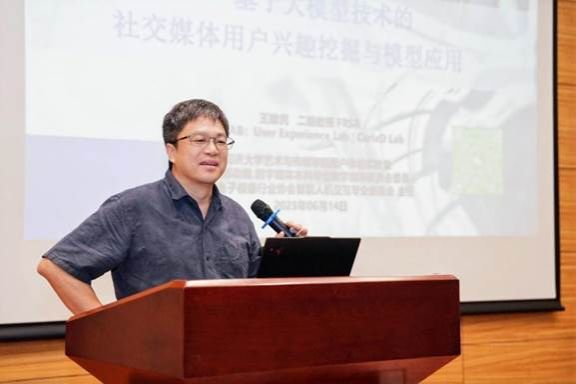 同济大学艺术与传媒学院副院长王建民教授以《基于大模型技术的社交媒体用户兴趣挖掘与模型应用》为题进行分享