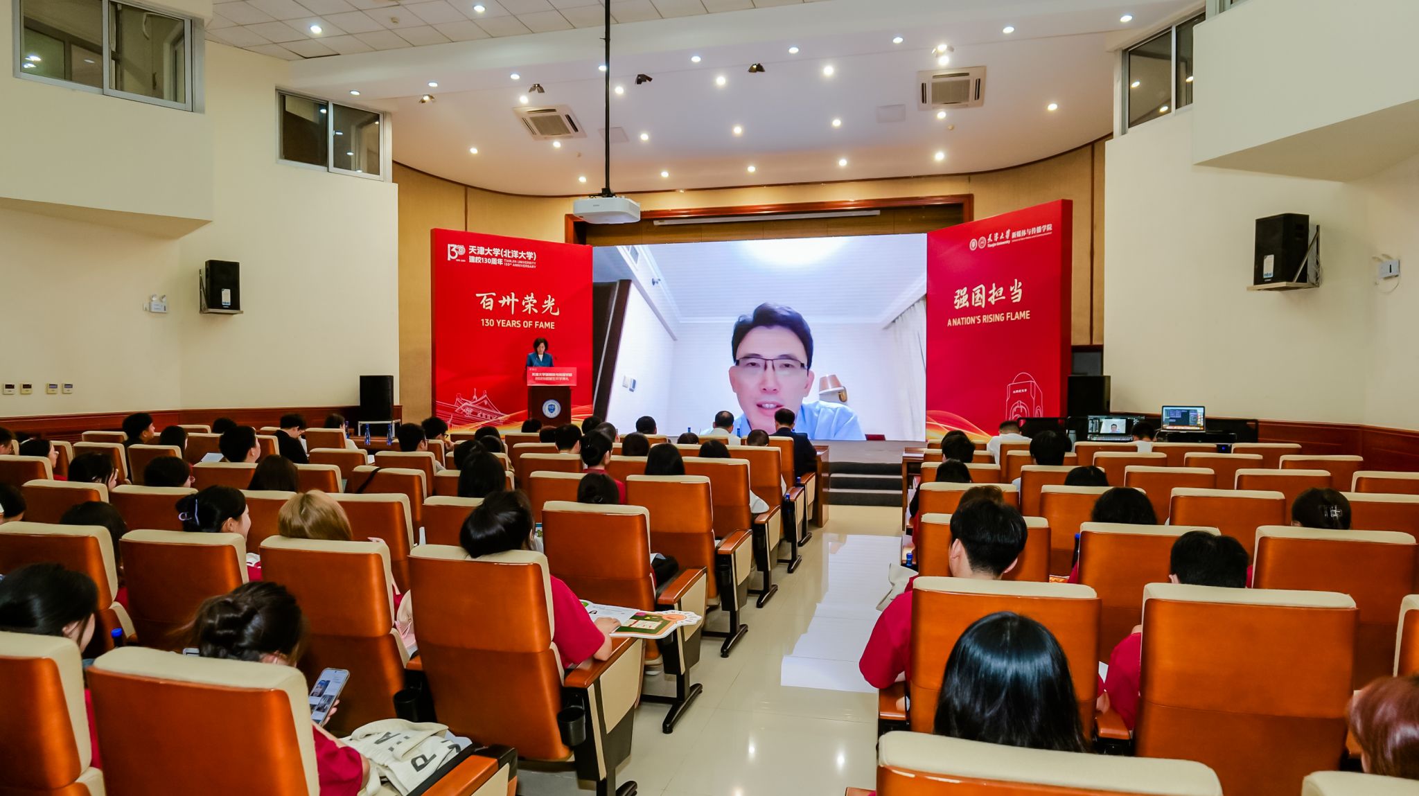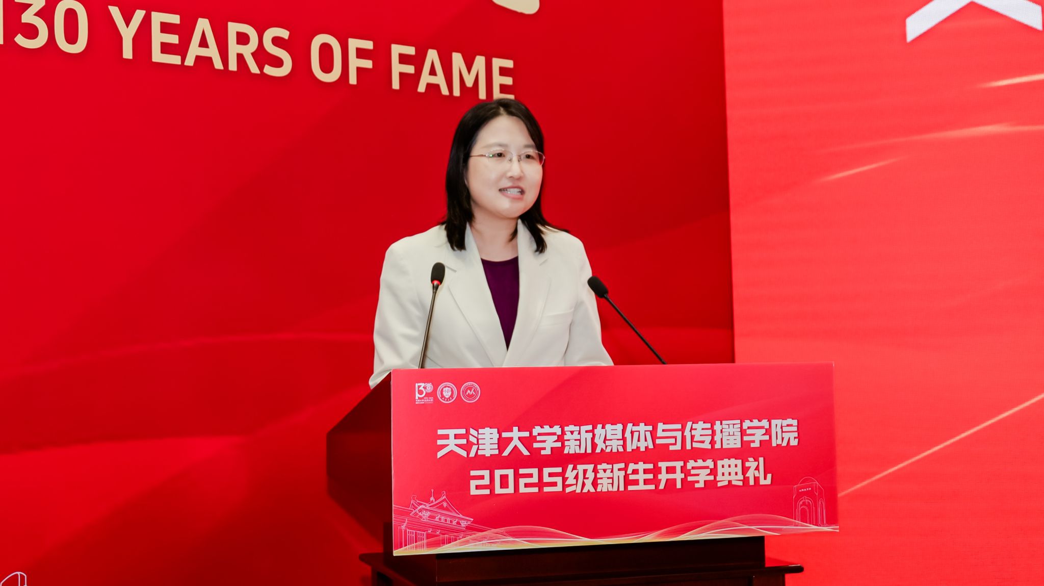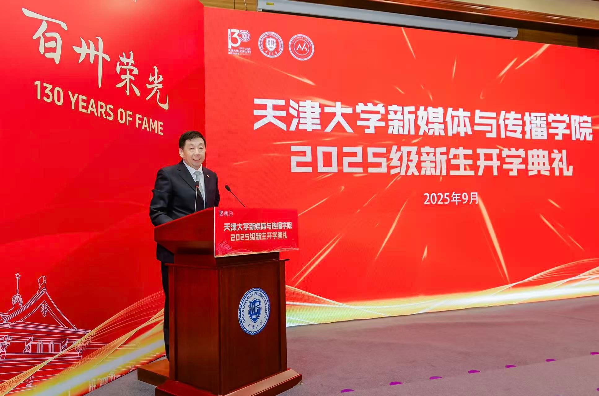 学院党委书记王赞通过视频形式向新生们表达了欢迎与期望。他指出,当今世界正经历百年未有之大变局,国际舆论场围绕话语权的争夺日趋激烈,新闻传播学对于凝聚人心、塑造大国形象具有极端的重要性。他希望同学们心怀“国之大者”,将个人理想深度融入国家发展的宏伟蓝图,勇于担当时代赋予新媒体人的光荣重任,为实现国家的远景目标贡献天大新媒体人的智慧和力量。他鼓励同学们立足天大这片沃土,善用学院在文工交叉领域的特色平台与优质资源,在思想的碰撞与技术的融合中,努力成长为熟悉新闻传播规律、善用数据算法、懂得新媒体治理的复合型人才,与学院共成长,相互成就。最后,他嘱托同学们务必恪守规矩底线,严格遵守学术规范与道德,筑牢个人成长成才的坚实基础,学院将永远是大家最坚强的后盾。