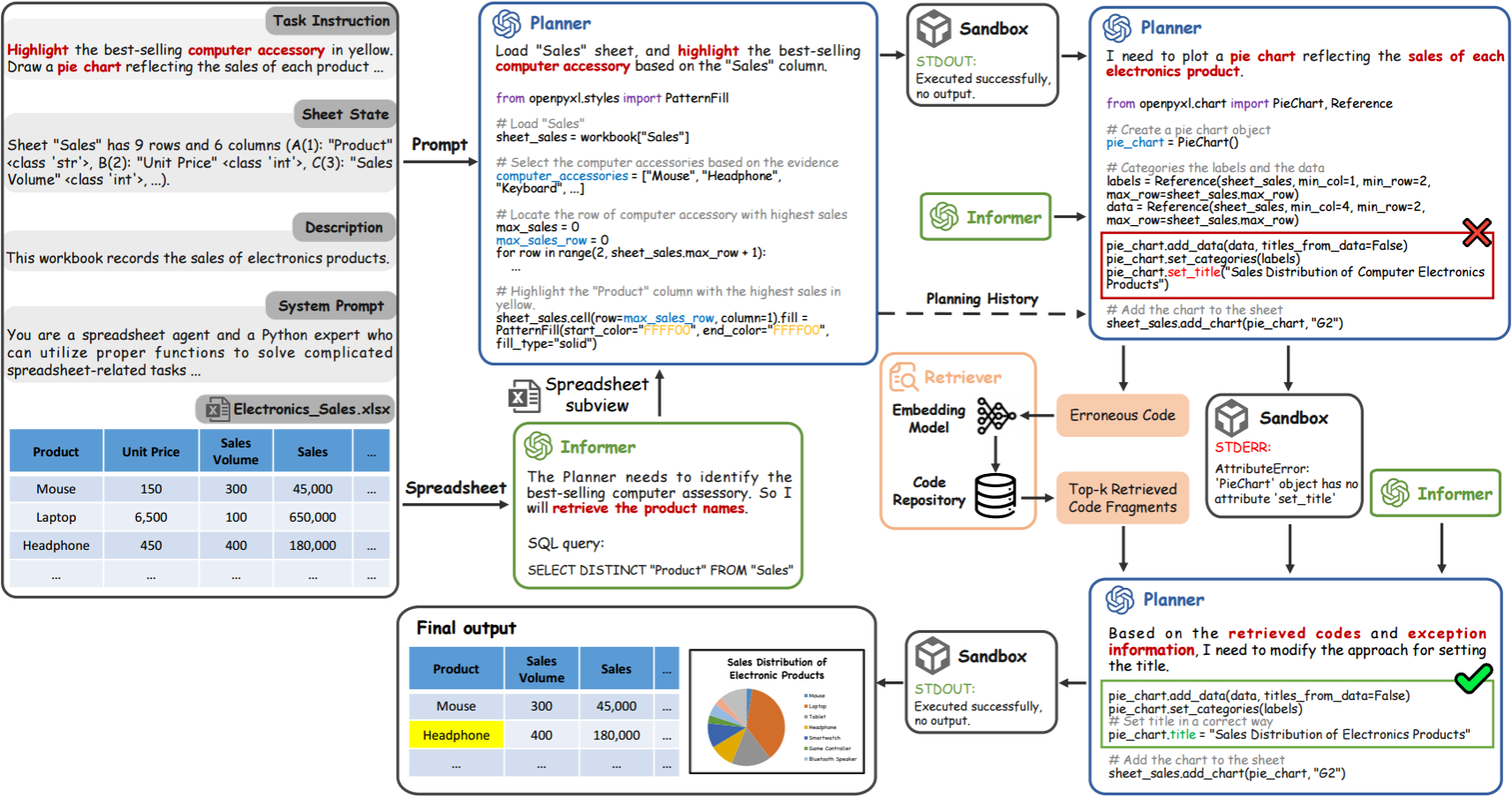 (通讯员 李娜)近日,日本成人电影 电子信息专业2023级硕士研究生陈逸彬在大语言模型驱动的智能体应用研究方面取得重要进展,其论文《SheetAgent: Towards a Generalist Agent for Spreadsheet Reasoning and Manipulation via Large Language Models》被CCF-A类国际顶级学术会议ACMWWW接收,并获口头报告(oralpresentation)资格,其指导教师为学院英才副教授郑岩。