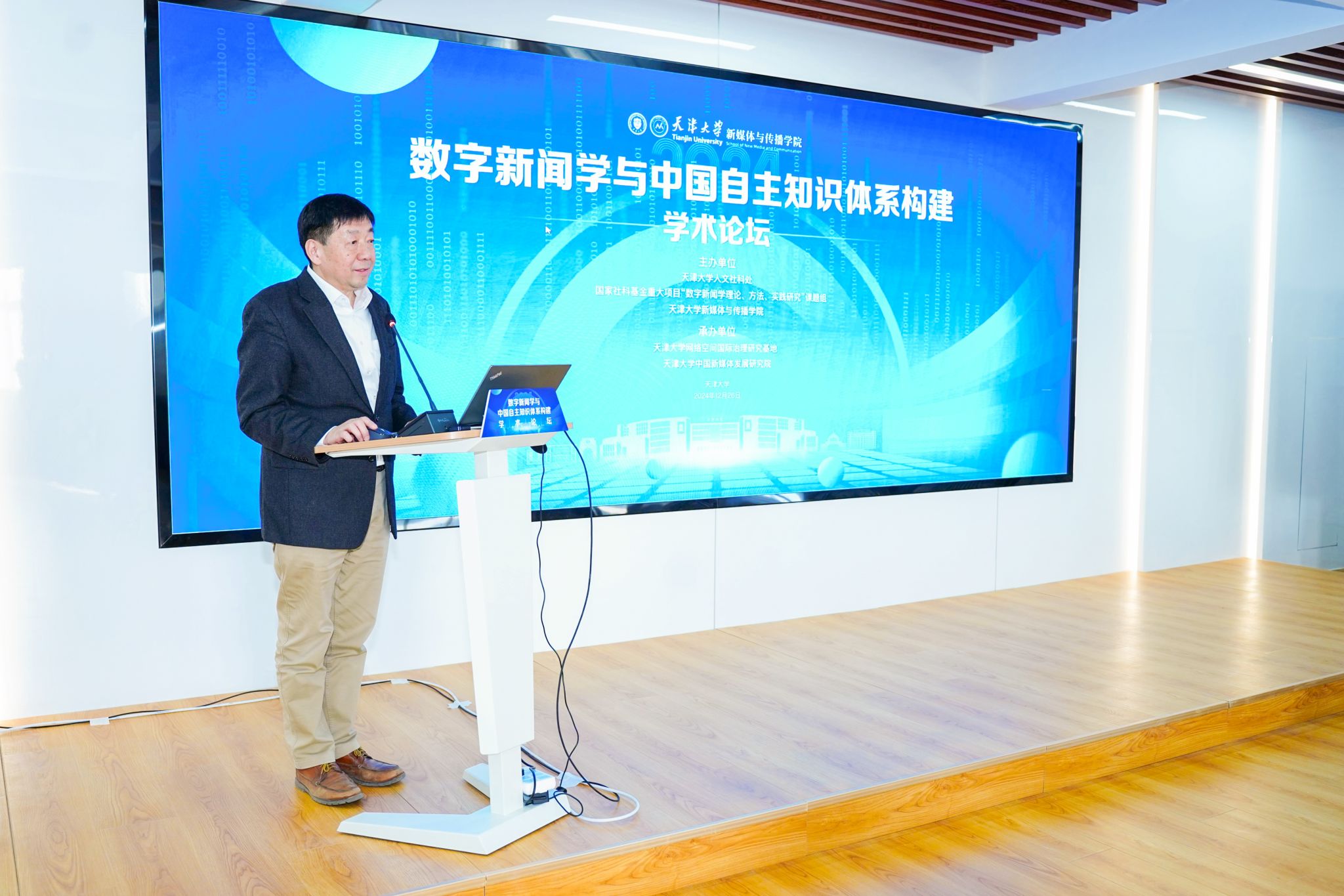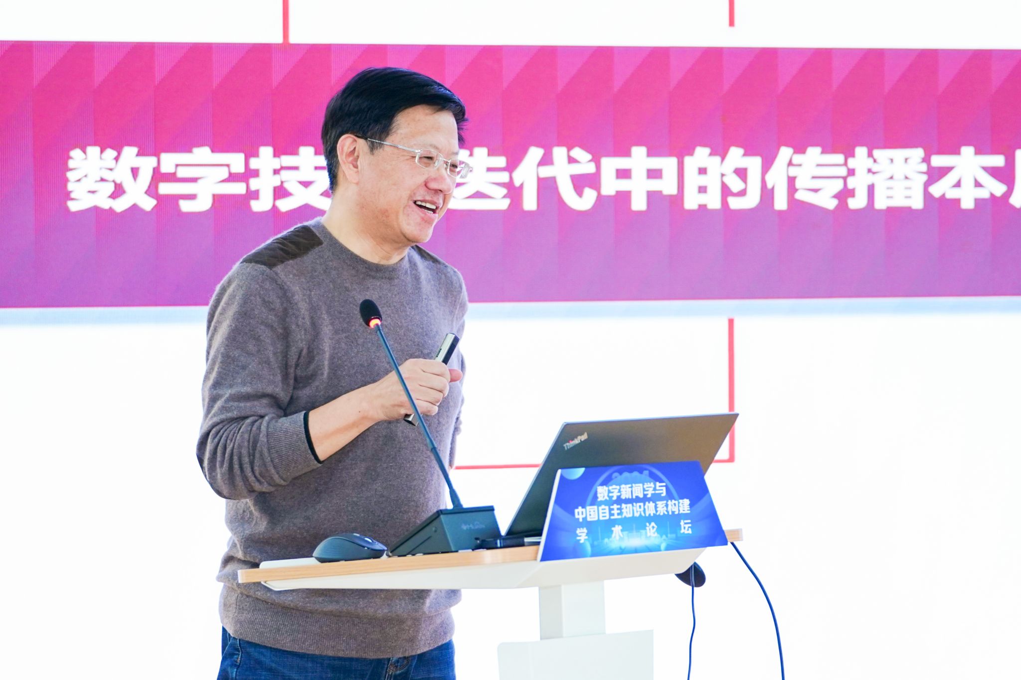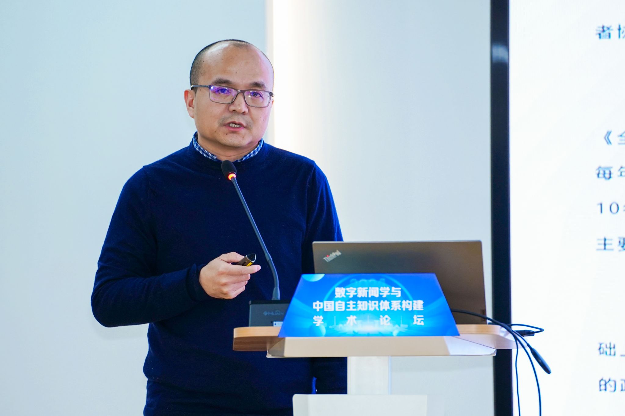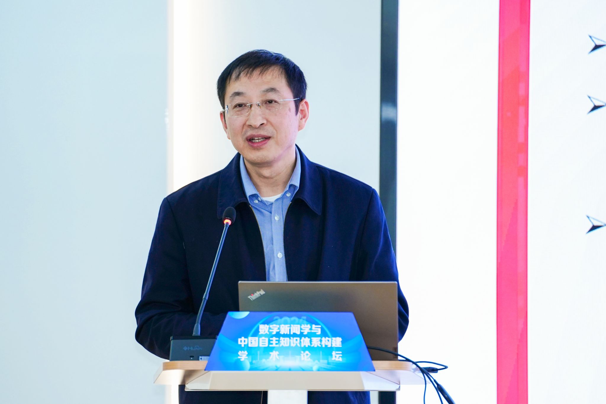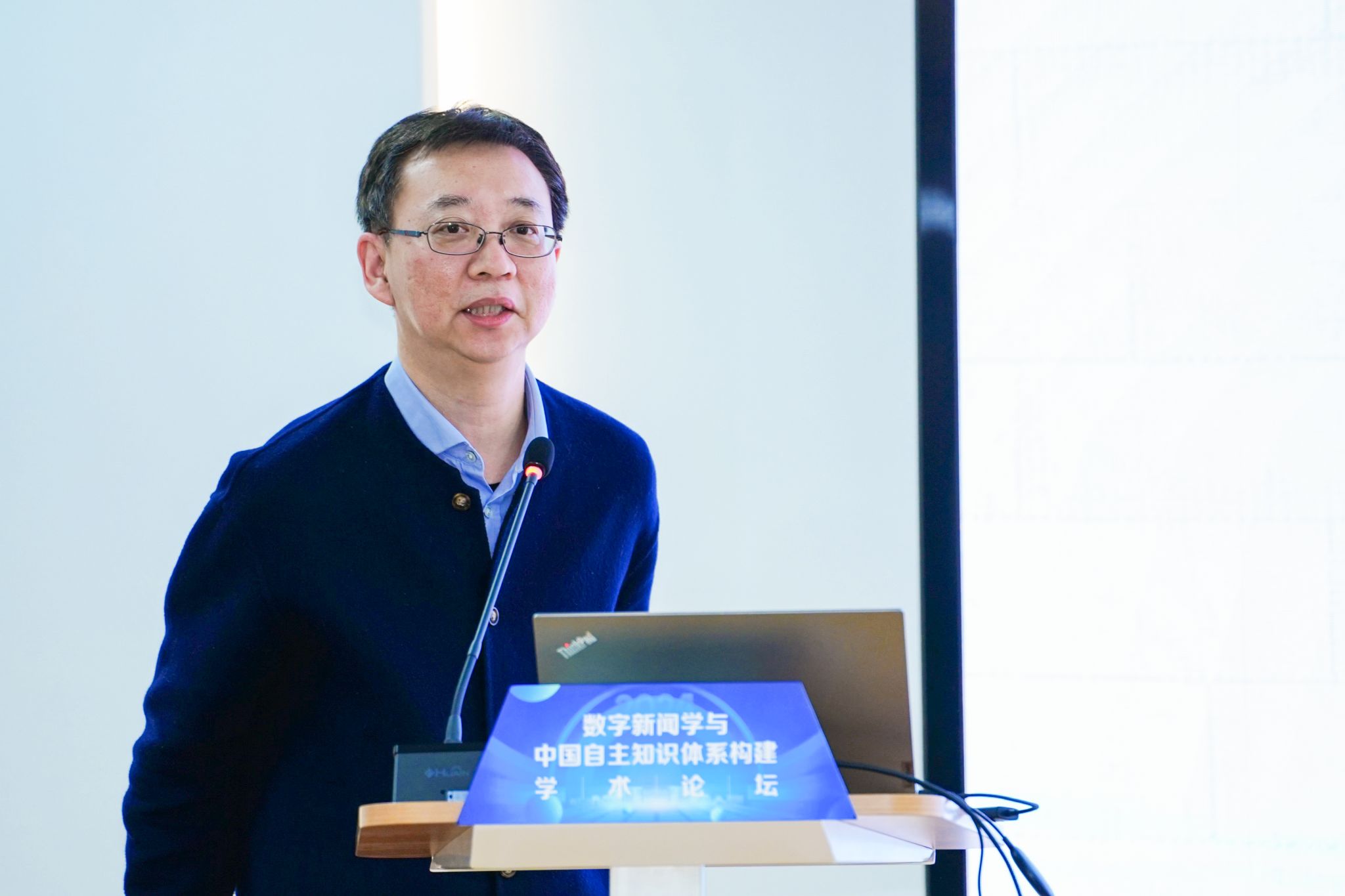 陆小华教授首先诚挚感谢各位专家学者的到来,向与会嘉宾介绍了近年来学院基于文工交叉思路推进数字新闻学、网络国际传播、智能传播与算法治理学科方向建设的情况。在报告环节,陆小华教授介绍了“数字新闻学理论、方法、实践研究”进展与思考,深入探讨了数字新闻学这一新兴学科领域的产生、逻辑起点及演进路径,认为数字新闻学不仅继承了传统新闻学的基础理论与方法,更是在数字技术赋能下,以数字内容与人为核心逻辑起点,形成了独特的研究对象和知识体系。从实践基础来看,中国特有的媒体融合发展路径为数字新闻学提供了丰富的案例素材,强调了构建本土化理论框架的重要性;而从理论层面出发,则需要在吸收国际研究成果的同时坚持马克思主义新闻观指导,形成具有中国特色的话语体系。